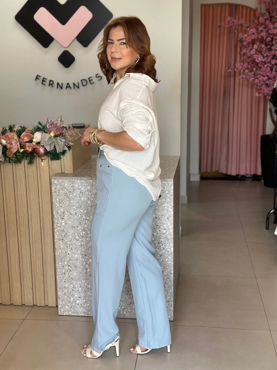 A calça pantalona acompanha um cinto que valoriza a silhueta e traz um toque extra de estilo. Confeccionada em tecido leve e confortável, é perfeita para usar em qualquer ocasião. Sua modelagem ampla garante movimento e elegância, tornando a peça ideal para compor looks versáteis e sofisticados.