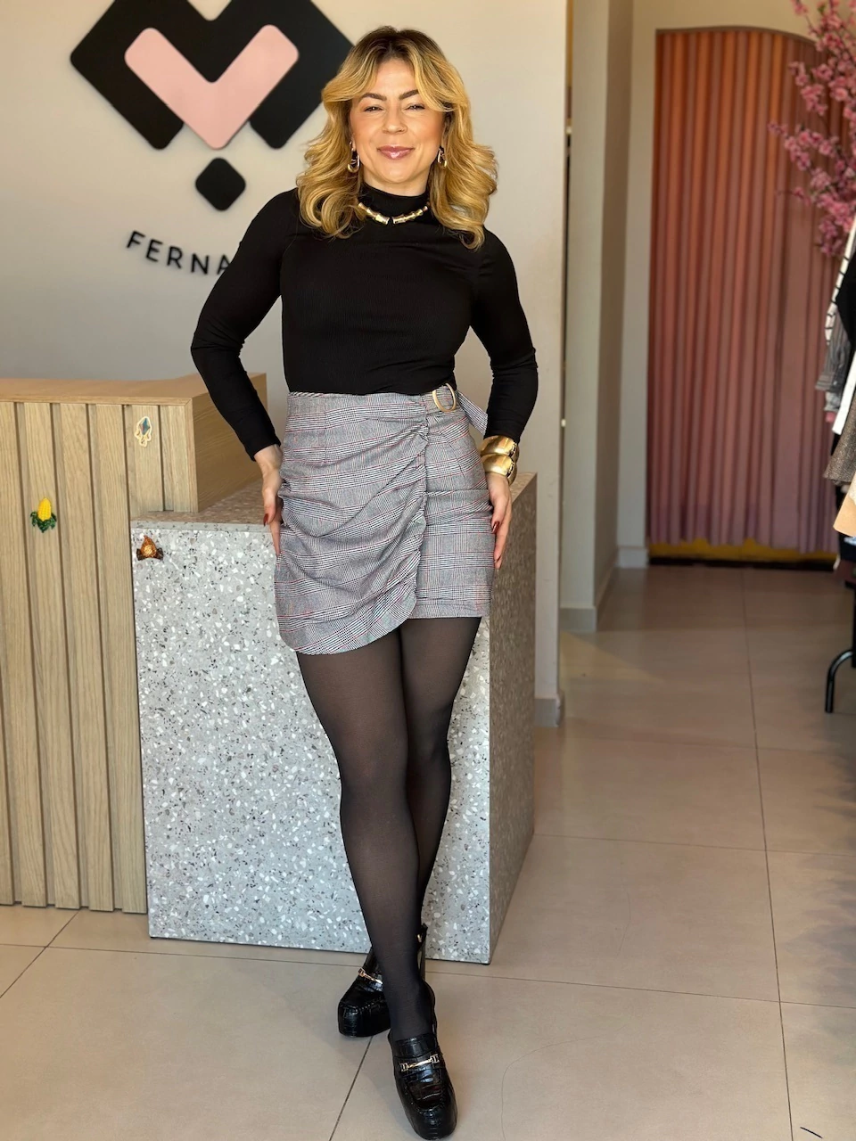 A saia xadrez curta é a peça-chave perfeita para quem busca um look estiloso, jovem e com personalidade.Com estampa clássica e atemporal, ela ganha um toque moderno com a modelagem ajustada e o comprimento curto, ideal para composições autênticas e cheias de atitude.Com modelagem curta, que valoriza as pernas e combina super bem com camisetas básicas, croppeds, camisas e jaquetas.
