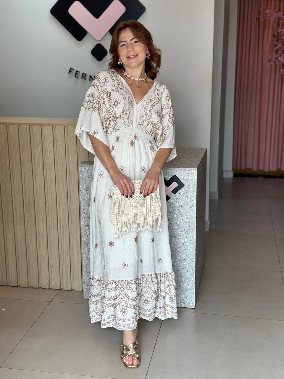 É uma peça alongada e leve, ideal para quem busca conforto com estilo. Seu design fluido valoriza o movimento do corpo, enquanto o corte solto garante um caimento natural. O estilo boho se destaca pelos detalhes sutis e pela versatilidade, perfeito para passeios, viagens ou ocasiões casuais durante o dia.